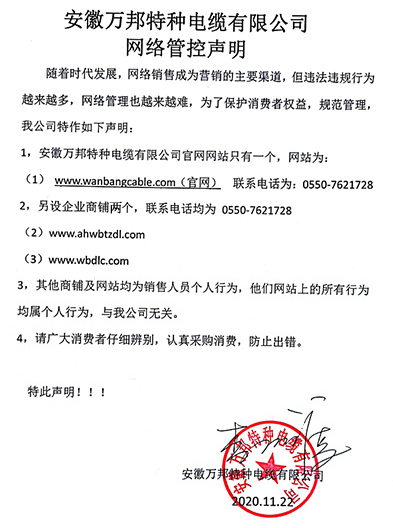 鄭重聲明:安徽萬邦特種電纜有限公司官方網站為:www_wanbangcable_com.dxdaysun.com,除此之外無任何子網站或合作網站,其余均為假冒偽劣。電話:0550-7621728 13485756353 地 址:安徽省天長市滁州高新技術產業開發區經四路29號